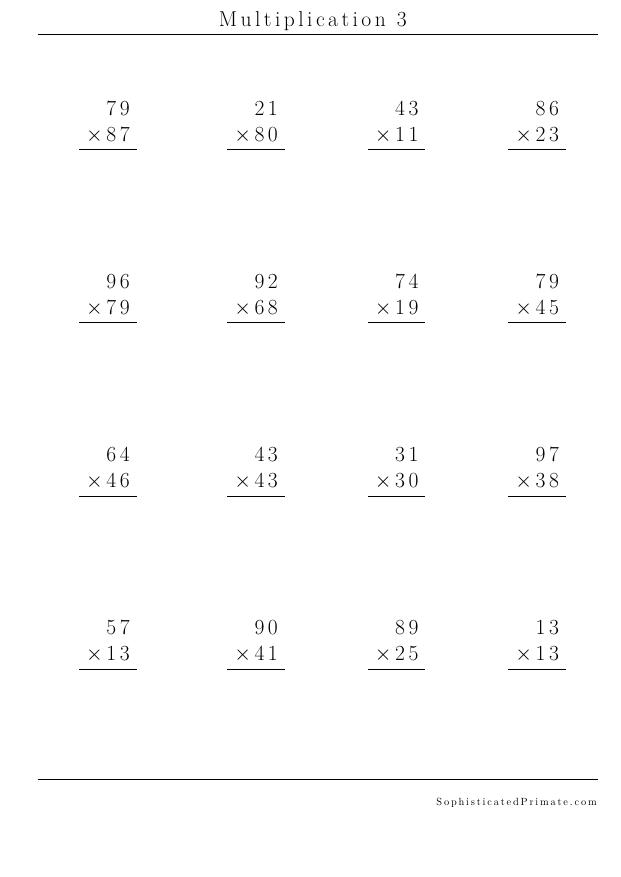 Worksheets: Long Multiplication